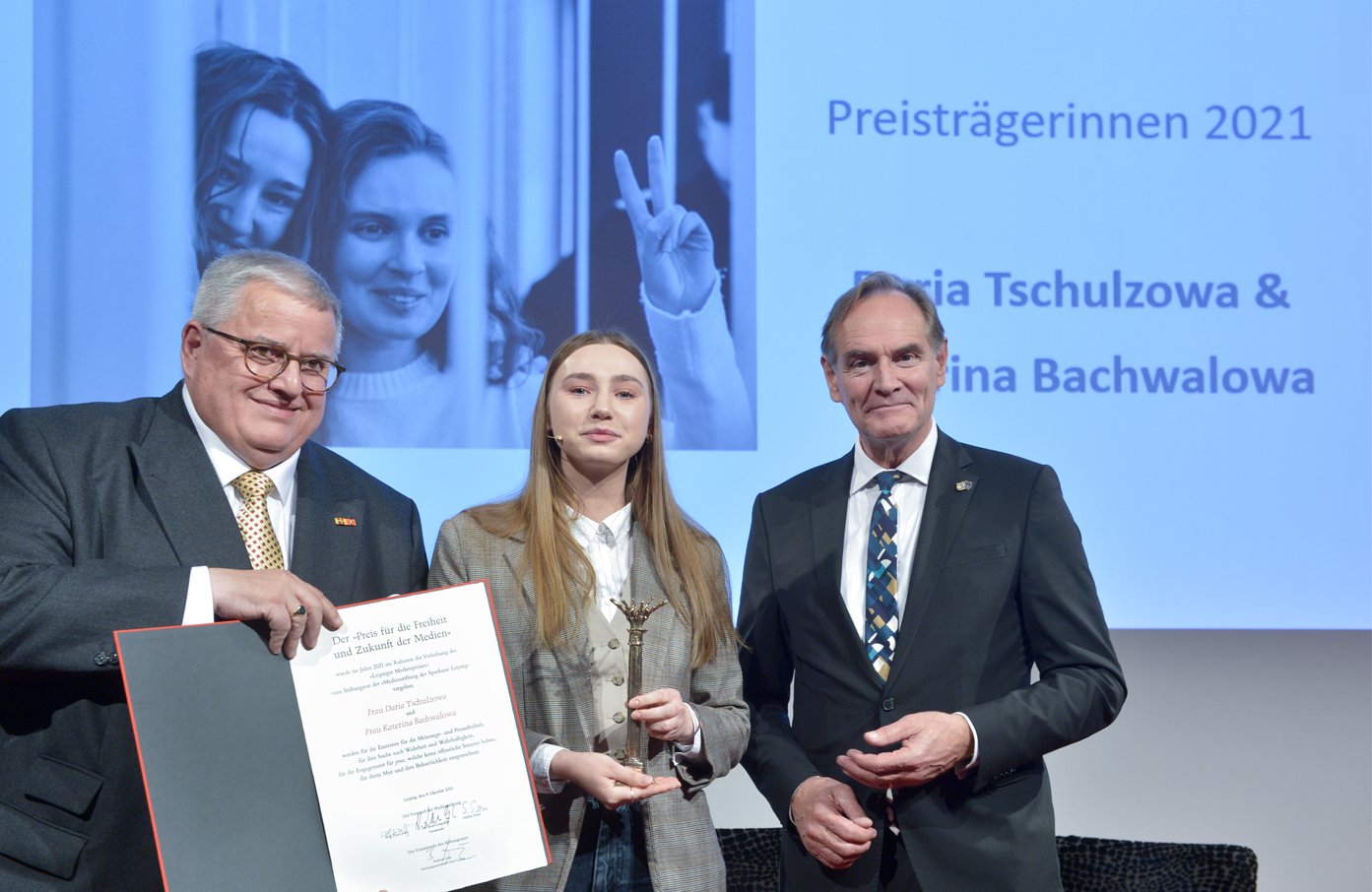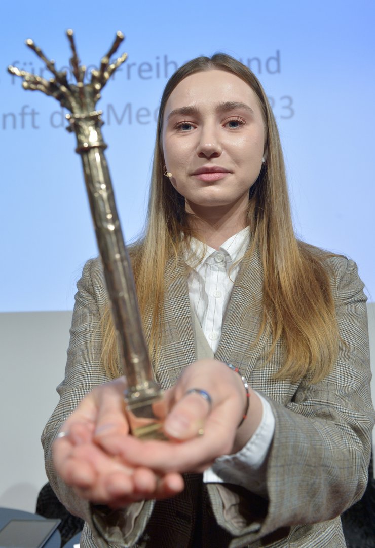 Im Rahmen der diesjährigen Preisverleihung konnte auch die Medienpreisträgerin 2021, die belarussische Journalistin Daria Tschulzowa, ihren Preis entgegennehmen. Tschulzowa war 2021 gemeinsam mit ihrer Kollegin Katerina Bachwalowa für ihre Berichterstattung über die Demonstrationen nach der wohl gefälschten Präsidentschaftswahl in Belarus geehrt worden. Eine ihrer Live-Übertragungen wurde als "Handlung, die in grober Weise die öffentliche Ordnung" verletzt habe, bewertet. Tschulzowa und Bachwalowa wurden zu einer Gefängnisstrafe verurteilt. Am 3. September 2022 wurde Tschulzowa aus der Haft entlassen und lebt seitdem in Polen. Sie erinnerte in ihrer Dankesrede an ihre Kollegin Bachwalowa sowie 30 weitere Journalistinnen und Journalisten und Tausende andere Menschen, die weiterhin in Belarus in Haft sind, weil sie sich für die Freiheit eingesetzt haben. "Ich bin sehr dankbar, dass Sie uns mit diesem Preis eine Plattform geben, um darüber zu sprechen, was in der Ukraine, in Belarus und in Russland passiert. Wir müssen darüber sprechen."