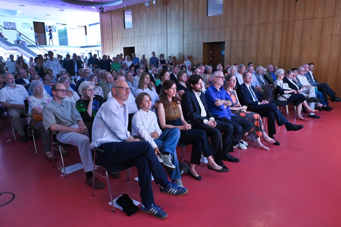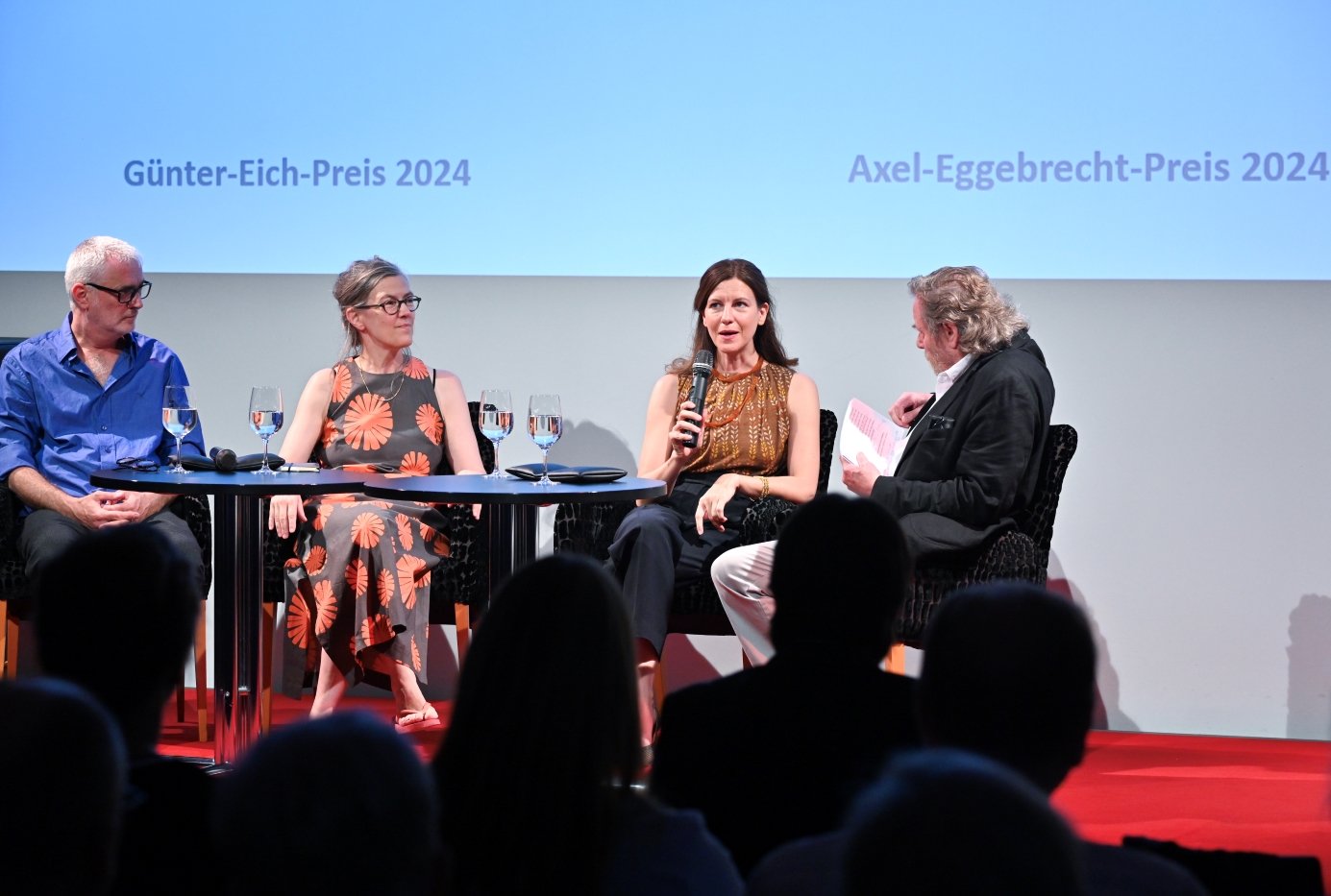 Radiopreisverleihung 2024: Stephan Seeger (Geschäftsführender Vorstand der Medienstiftung), Thomas Fritz (Hörspieldramaturg unter anderem beim MDR und Juryvorsitzender des Günter-Eich-Preises), Wolf-Dieter Jacobi (Stellvertretender Vorstandsvorsitzender der Medienstiftung), die Preisträger Stefan Scheib, Katharina Bihler (Günter-Eich-Preis) und Franziska Sophie Dorau (Axel-Eggebrecht-Preis), Dr. Harald Langenfeld (Vorstandsvorsitzender von Medienstiftung und Sparkasse Leipzig), Moderator Wolfgang Schiffer (früherer Leiter Hörspiel, Radio-Feature und Literatur beim WDR und Mitglied beider Radiopreisjurys) und Martin Fiedler (Projektverantwortlicher Radio der Medienstiftung) (v.l.n.r.).