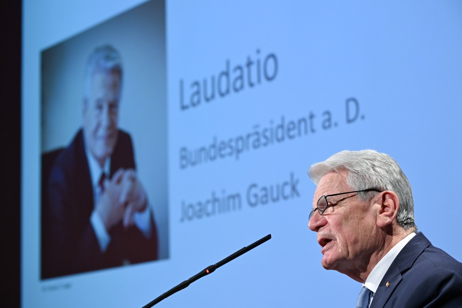 Gauck würdigte den Preisträger: "Durs Grünbein ist kein Autor der Parole. Er ist auch kein Autor der schnellen moralischen Abkürzung. Seine Texte arbeiten gegen die Verflachung, indem sie differenzieren. Nicht aus der Lust an der Kompliziertheit, sondern aus dem Respekt vor der Wirklichkeit."