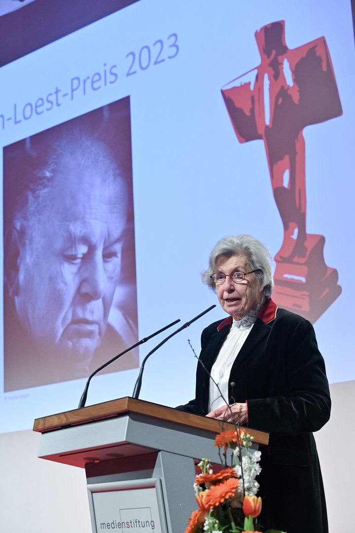 "Die Jurorinnen und Juroren kannten den Namensgeber unseres Preises - manche von ihnen wohl besser als viele andere", erklärte Dr. Harald Langenfeld, Vorstandsvorsitzender der Sparkasse Leipzig und der Medienstiftung: "Seinen Namen, seine Haltung und sein Andenken auch mit der Wahl der diesjährigen Preisträgerin lebendig zu halten, war ihr Ansinnen. Und mit der Wahl von Ines Geipel als Autorin mit literarisch wie gesellschaftspolitisch wichtiger Stimme in der intellektuellen Tradition Loests ist dies der Jury auch gelungen". In der Begründung der Jury unter Vorsitz von Andreas Platthaus, Chef des Ressorts Literatur und literarisches Leben der Frankfurter Allgemeinen Zeitung, hatte es geheißen, Ines Geipel sei "eine engagierte Autorin, die sich im Bergwerk der literarischen Aufarbeitung mit der Wirkungsgeschichte zweier diktatorischer Systeme beschäftigt."